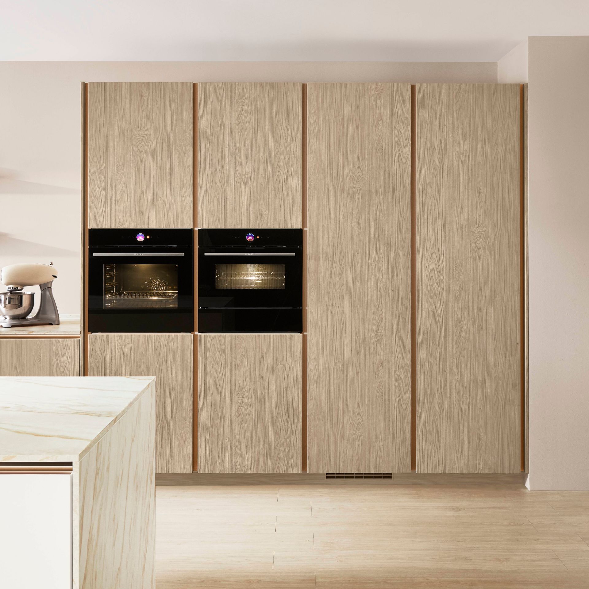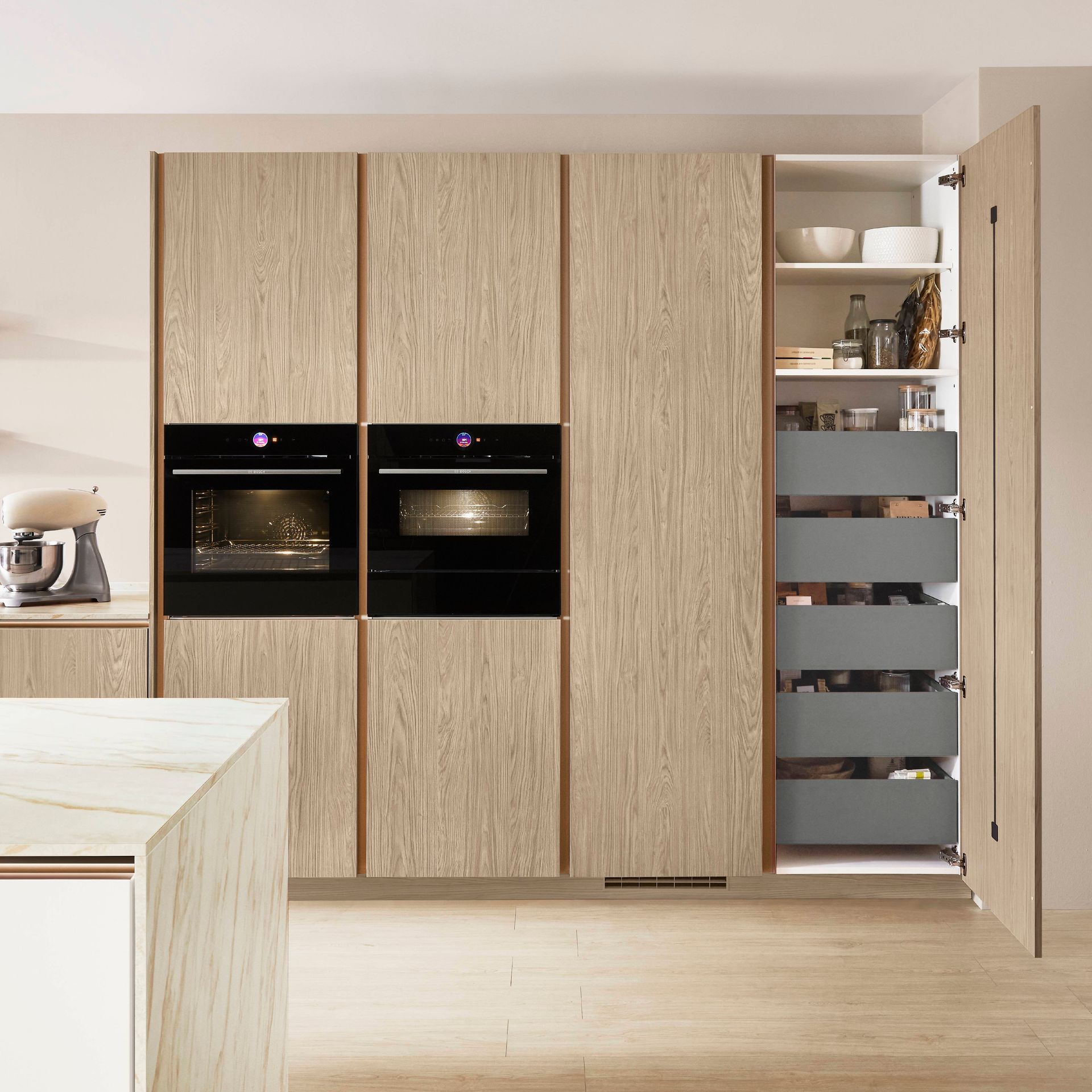 Holzoptiken sind die zentralen Elemente für die von der Natur inspirierten Küche VILLACH_WIEN von PAUL LEVÍN und schaffen Behaglichkeit, die zu jedem Einrichtungsstil passt. Materialien wie Marmor oder Granit bringen gemeinsam mit den facettenreichen Holzdekoren die Schönheit der Natur in Ihren Alltag.