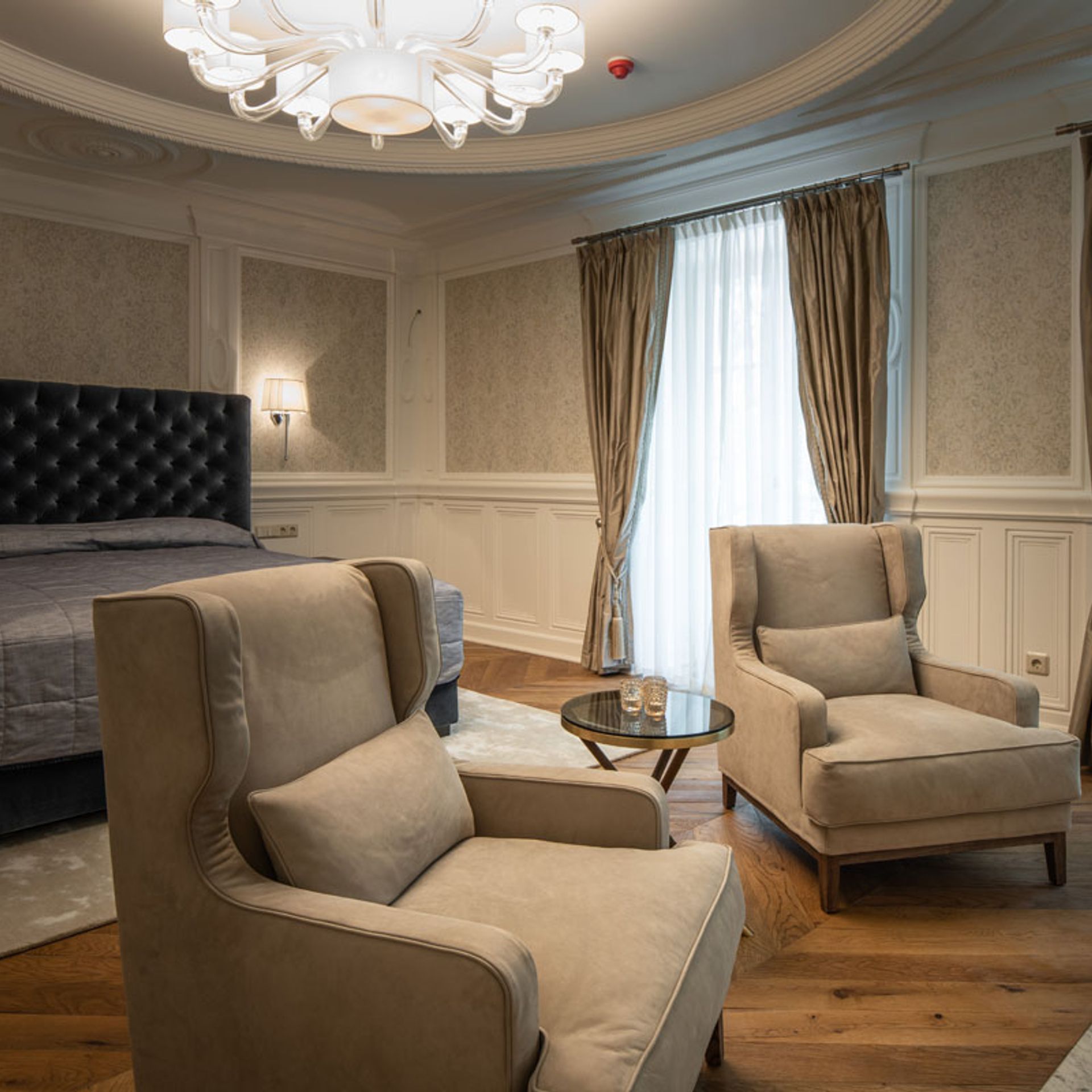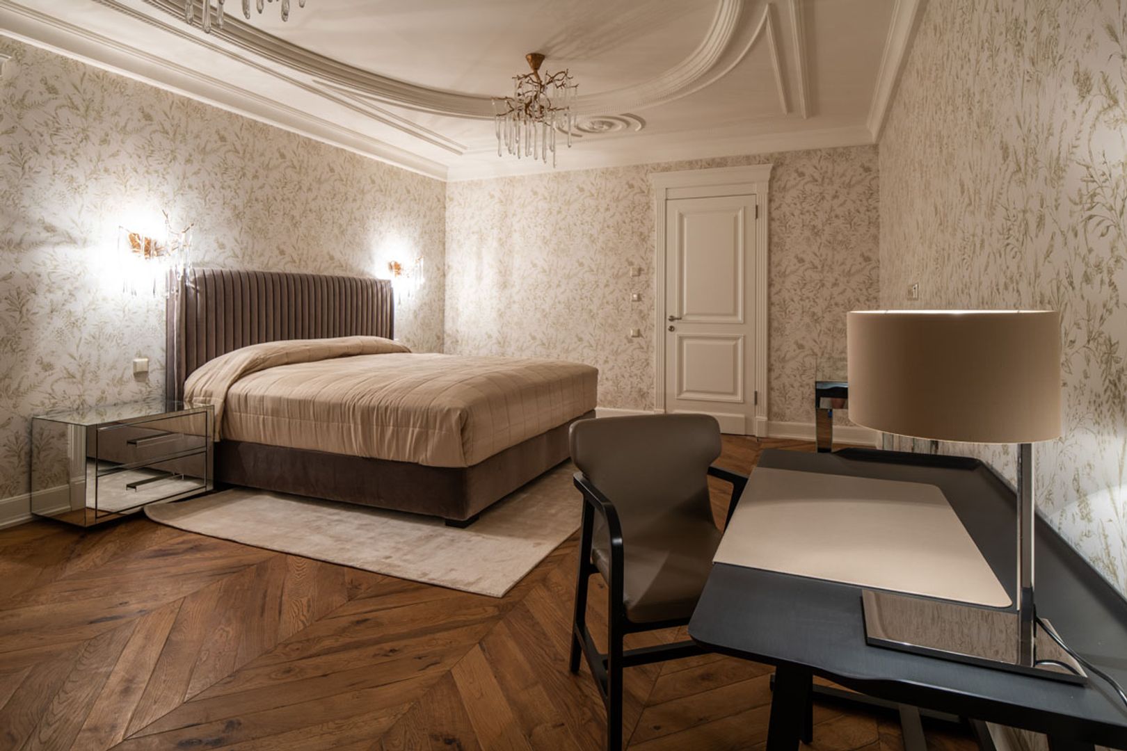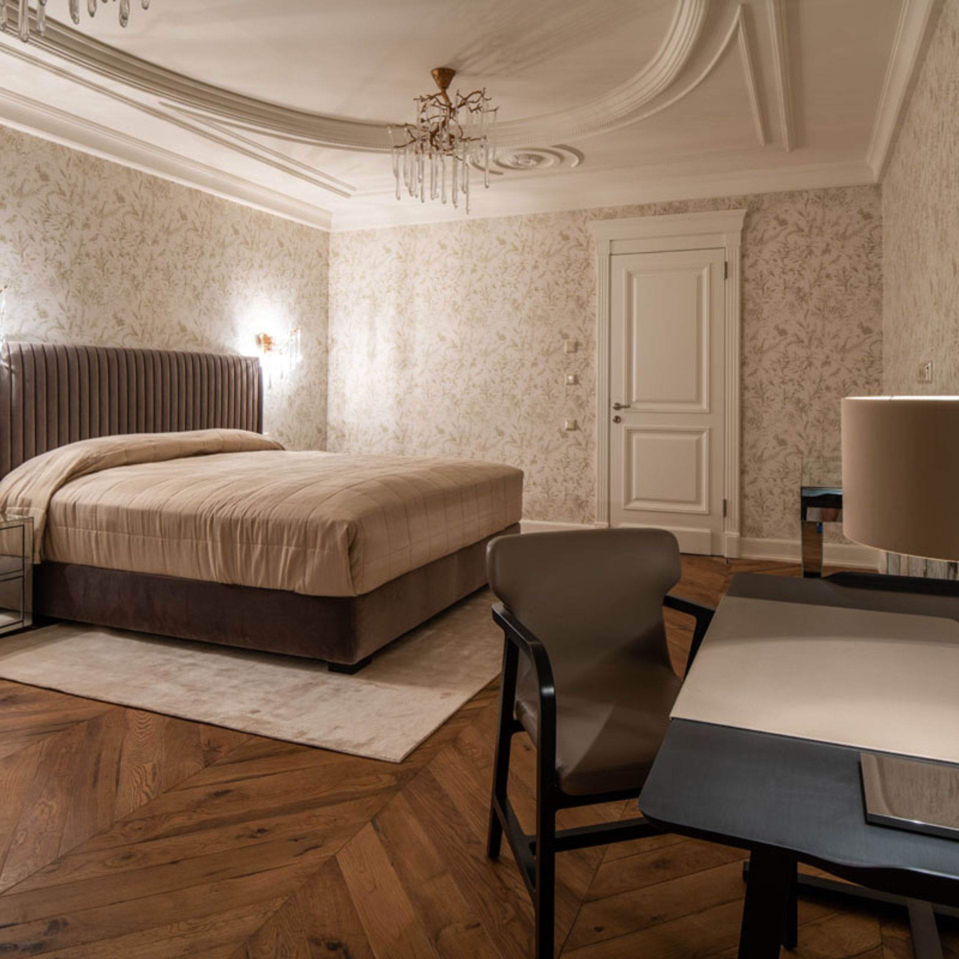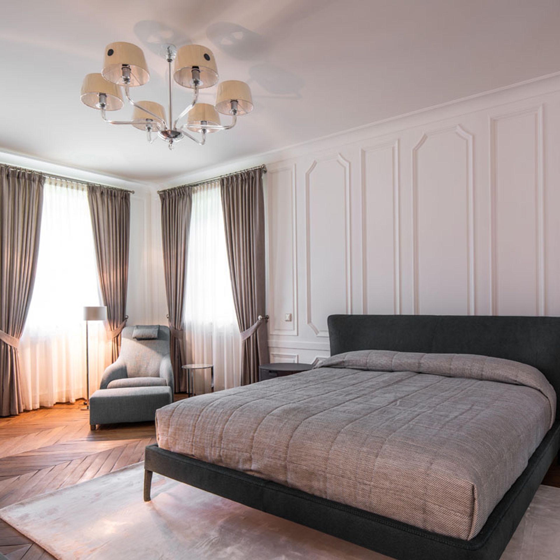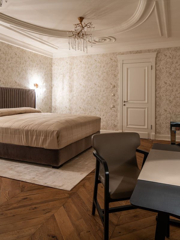 Für dieses Projekt wurden die wunderschönen Polsterbetten der Möbelmanufaktur Wittmann aus Österreich und Maxalto aus Italien verwendet. Abgerundet mit exquisiten Stoffen, Nachtkästchen, Kommoden, Sitzmöbel und Accessoires von Porada aus Italien. Alles in Übereinstimmung mit Beleuchtung, Farben und Tapeten. Auch die Fensterdekoration mit edlen Stoffen und handwerklicher Näharbeit wurde durch unser Team realisiert. Ein exklusives Schlaferlebnis auf allen Ebenen.