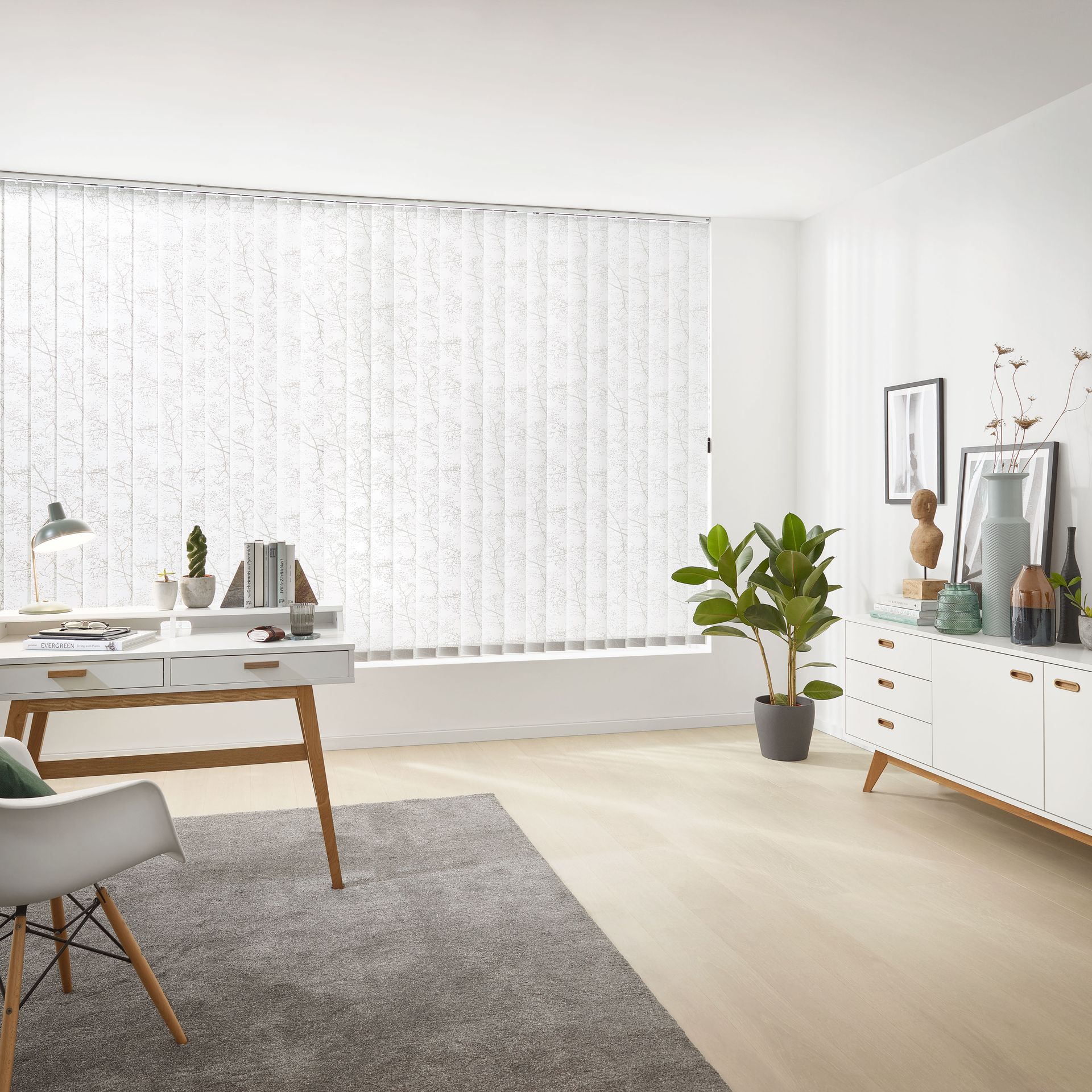 Wie wirkt ein Raum höher? Indem man das Vertikale betont. Diesem einfachen Gesetz folgt die Vertikaljalousie und schafft durch ihre großzügigen Lamellen ein Gefühl von Höhe, Freiheit und Luftigkeit. Sehr reduziertes Design und eine minimalistische Formensprache schaffen ein puristisches Ambiente, das Raum für Funktionalität lässt. Deshalb sind Lamellenvorhänge vor allem im Objektbereich und in der modernen Architektur sehr beliebt. Funktional sorgen sie für maximalen Sonnen- und Hitzeschutz, wobei durch die je nach Sonneneinstrahlung breiteren oder schmäleren Sichtschlitze - je nach Regulierung der Lamellen - für den nötigen Durchblick nach außen gesorgt und umgekehrt die Privatsphäre gesichert ist. Das Streulicht sorgt für ein angenehmes Lichtklima.