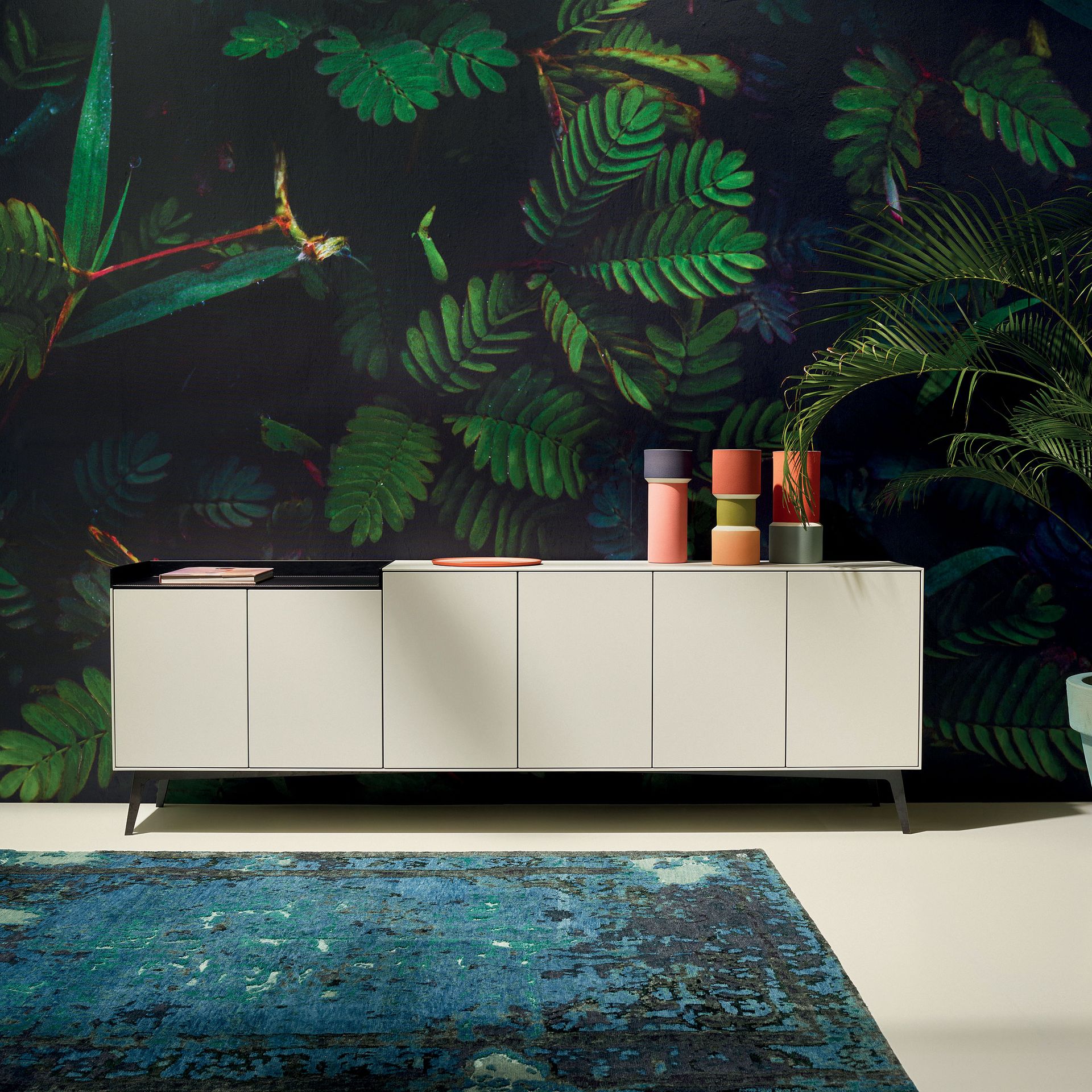 Wohnlandschaften hier, hochbeinige und grazile Sofas als Blickfang da. Auch das Auge wohnt mit. Deshalb schaffen zwischendurch oft schwarze, aber auch glänzend silberne oder farbig lackierte Metallgestelle farbige und designtechnische Kontraste – und wirken dadurch platzsparend und dennoch sehr elegant.